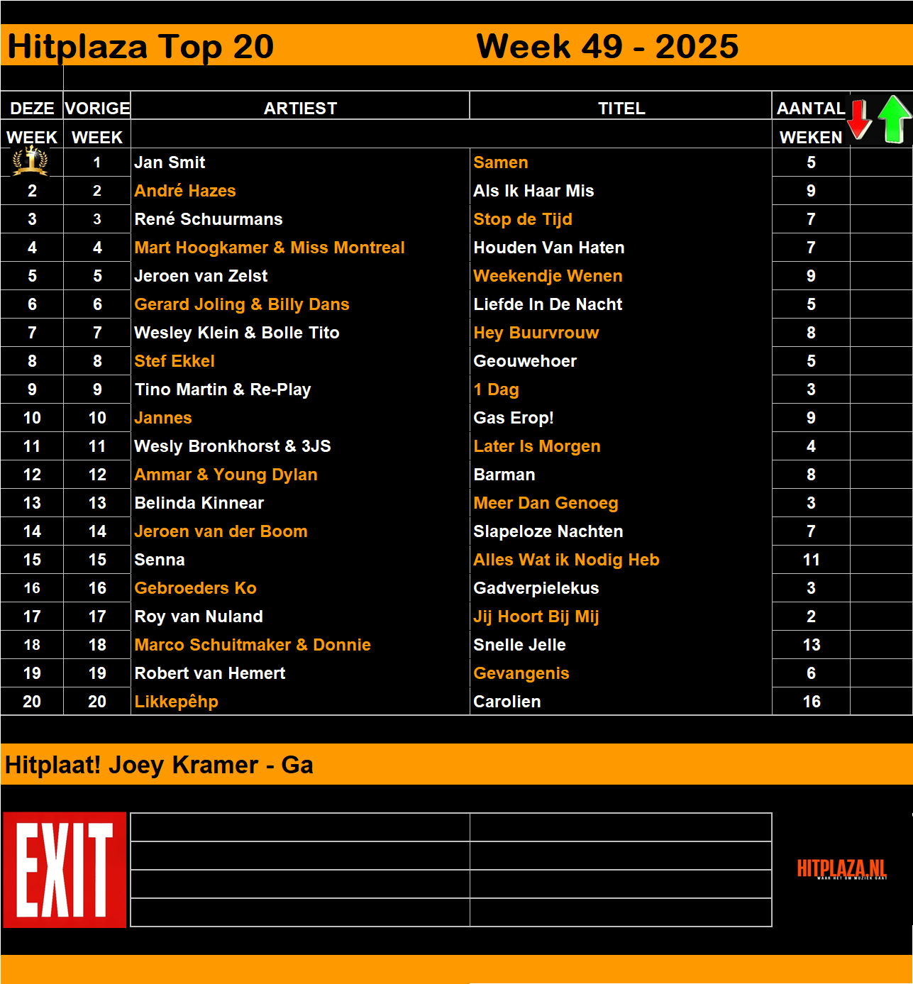 Een gloednieuwe hitlijst die de grootste en mooiste Nederlandstalige nummers van het moment viert.